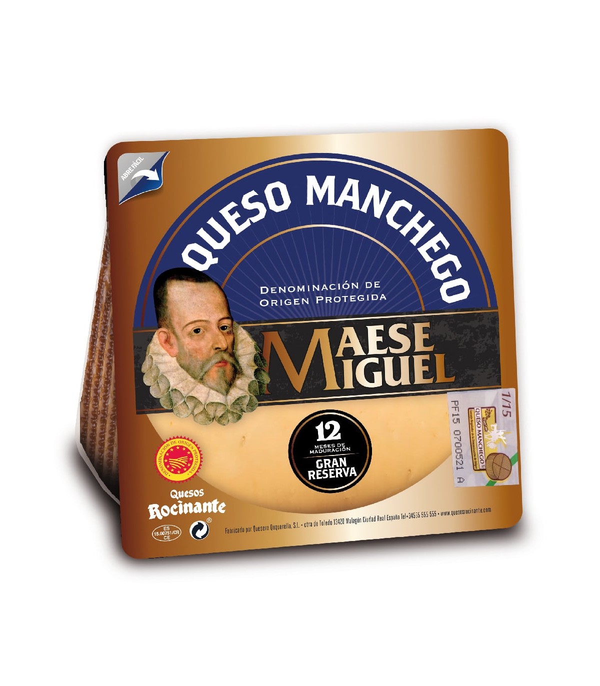 Queso de pasta prensada elaborado a partir de leche de oveja pasteurizada de raza manchega, con un periodo de maduración mínimo de 360 días.